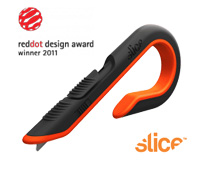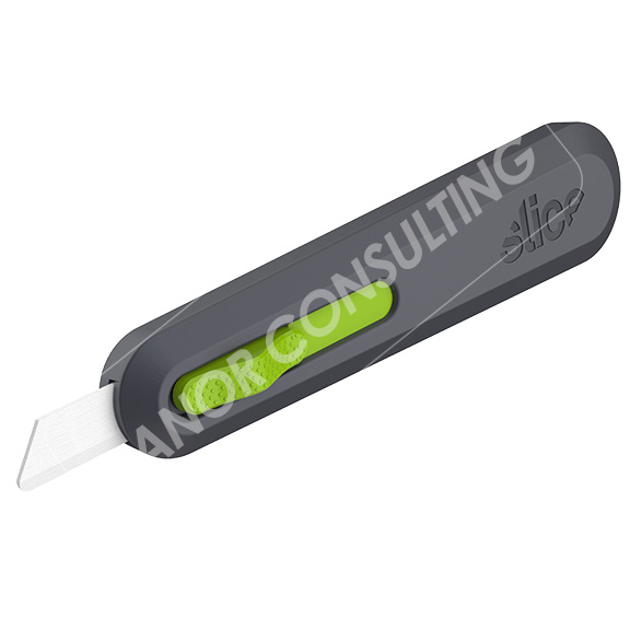 Slice Auto-Retractable Box Cutter with patented Slice ceramic safety blade reduces injuries and lowers costs. Ergo J-Hook handle protects hands during use and limits exposed blade, making for a safer, more comfortable cutting experience. Blade automatically retracts back into housing when slider button is released for added safety. Includes one (1) patented Slice ceramic safety blade with safer rounded tips. Lasts up to 10x longer vs. metal blades. Safer vs. metal blades due to our proprietary manufacturing and sharpening process. Used by more than half the Fortune-1000 safety professionals in 35+ countries. Red-Dot® Award Winner. SKU#10503.