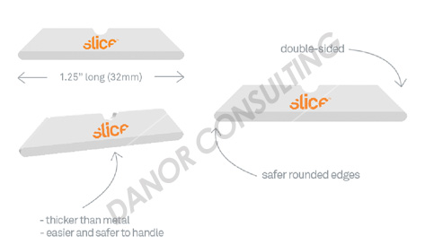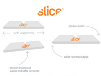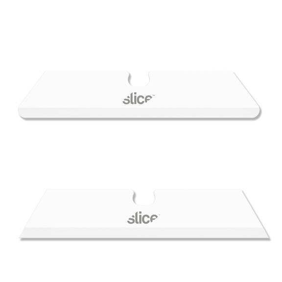 Slice 10526 utility knife blades are designed for use exclusively in Slice utility knives. Made of 100 percent zirconium oxide, Slice ceramic safety blades retain their sharpness 11 times longer than steel blades. Because of our proprietary manufacturing and sharpening process, they also feature a finger-friendly edge. Slice replacement utility blades are non-sparking, non-magnetic, and require no special oil coating or maintenance. Choose a rounded-tip blade for extra protection against accidental punctures. SKU #10526
