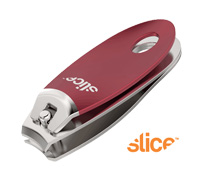 Sharp, curved professional-grade stainless steel blades for precise cutting of fingernails. Non-slip ergonomic handle designed to provide a secure grip and optimum control. Built-in nail file. Compact folding shape fits neatly in purse or pocket. Designed for Slice by Michael Graves. SKU#10470