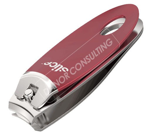 Sharp, straight-edged, professional-grade stainless steel blades for precise cutting of toenails and acrylic nail tips. Non-slip ergonomic handle designed to provide a secure grip and optimum control. Folds into compact shape with built-in file. Designed for Slice by Michael Graves. SKU#10480.
