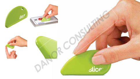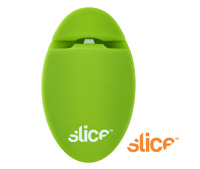 The original Slice Slice Safety Cutter. Features a Finger-Friendly™ microscopic Slice ceramic blade that's a quick, easy and safe substitute for scissors or traditional safety knives. Perfect for removing shrink-wrap, thin film, opening clamshell plastic packaging and flexible packaging, paper, paper rolls, and more. Used by thousands of manufacturing facilities and millions of homes world-wide to reduce injuries and lower costs. Built-in magnet and key-ring hole. Measures 62 x 30 x 6 mm and weights 6 gm (2.4 x 1.25 x 0.25 in - 0.2oz). One (1) unit per package. SKU#00200