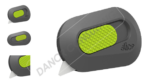 Auto-retractable Mini Cutter with replaceable Slice ceramic safety blade features small convenient size and built-in magnet. Patented handle with rubberized slider button limits the amount of exposed Slice ceramic-blade to further reduce injuries. The perfect mini-box-cutter, it automatically retracts back into housing for added safety when slider button is released. Includes one patented high-tech double-sided Slice ceramic blade SKU#10404 designed to reduce injuries by incorporating a safer rounded-tip. Sharpness level up to 10x longer than steel. Measures 63 x 38 x 10 mm & weighs 10 gm SKU#10514