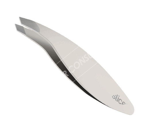 Perfectly aligned, hand-filed slanted tips plus a wide, comfortable patented grip for expert precision. Designed for Slice by famed architect Michael Graves. Also available in soft-touch non-slip finish. Measures approx. 86x20x9mm (20gm) - 3.5x0.75x0.35 in (0.7oz). Crafted in 100% stainless steel. SKU#10452.